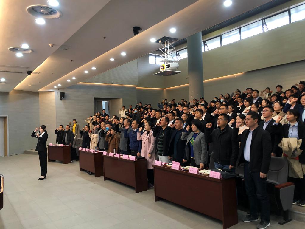 “我志愿成为一名高校辅导员,拥护党的领导,献身教育事业……”10月20日上午,我校2021年新任辅导员岗前培训结业典礼暨入职仪式在图书馆二楼报告厅举行。校党委常委、副校长董雨出席仪式并讲话。