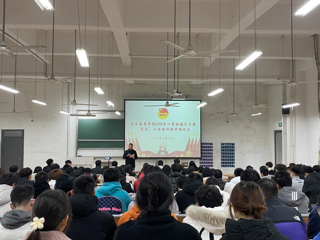 12月12日上午,土木建筑学院2021年入党积极分子暨“青马工程”培训班在天工106教室正式开班。学院党委副书记张向林、各年级辅导员、359名入党积极分子和大学生骨干通过线上线下相结合的方式参加开班式。