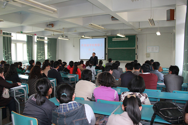石秀光进一步强调学院将严格执行教学巡查制度,目的在于“切实提高教学质量,推进学院内涵建设”,希望广大教师要继续坚持听课制度,“择其善者而从之,其不善者而改之”,努力提高自身教学水平。他还简要介绍了学院日语专业获批等专业建设方面取得的成绩,勉励大家要有“梦想”,勇于创新,要把自己的“梦”与“学院梦”、“中国梦”紧密结合起来,使个人发展、学院发展和学校发展同步并重。