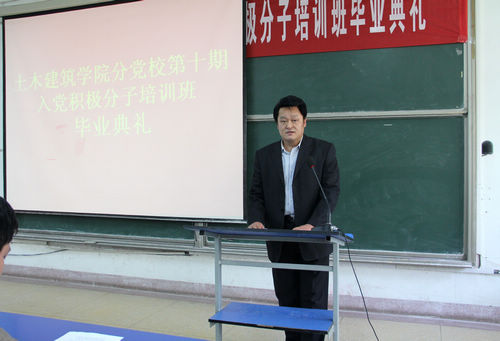 4月12日下午,土木建筑学院分党校在北校区2301教室举行了土木建筑学院分党校第十期入党积极分子培训班毕业典礼。土木建筑学院党委书记、分党校校长盛真,各年级学生辅导员和培训班全体合格学员参加了毕业典礼。