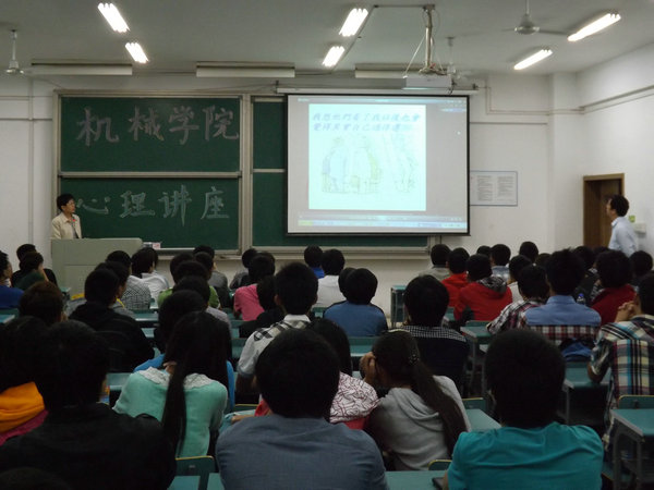2013年5月16日晚,机械工程学院在北实202教室举行了一场题为“阳光心态,魅力青春”的大学生心理健康讲座。讲座由机械学院党委副书记徐育军主持,2012级学生辅导员和所有学生干部参加。