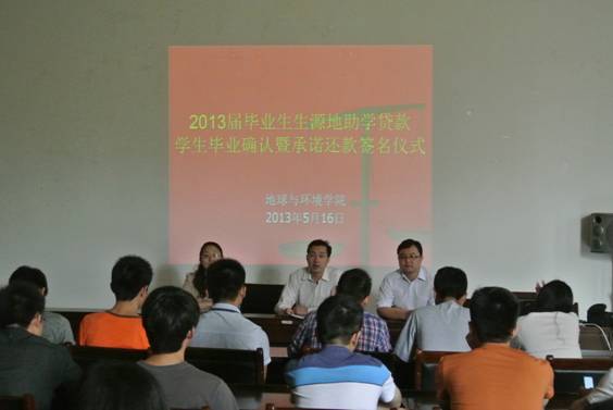 围绕毕业生文明离校教育,以及校资助管理中心开展的助学贷款学生毕业确认工作,5月16日,地球与环境学院在院报告厅组织召开毕业生诚信教育活动。院领导、学生辅导员、毕业班学生干部、贷款学生参加了活动。