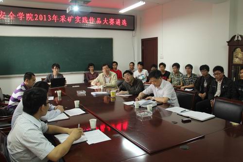 经过前期动员及培训,此次比赛共收到参赛作品25件,其中物理模型22件,数字模型3件。汇报会上,各团队负责人采用PPT汇报形式,结合动画演示,图文并茂地阐述作品核心内容。评审团就模型操作性、技术指标及创新点等向各团队提问并给出完善意见。经过3个多小时的紧张评选,学院初选出高盼军《模拟现代化矿井生产系统实物模型》等17件作品作为本次比赛重点扶持项目。