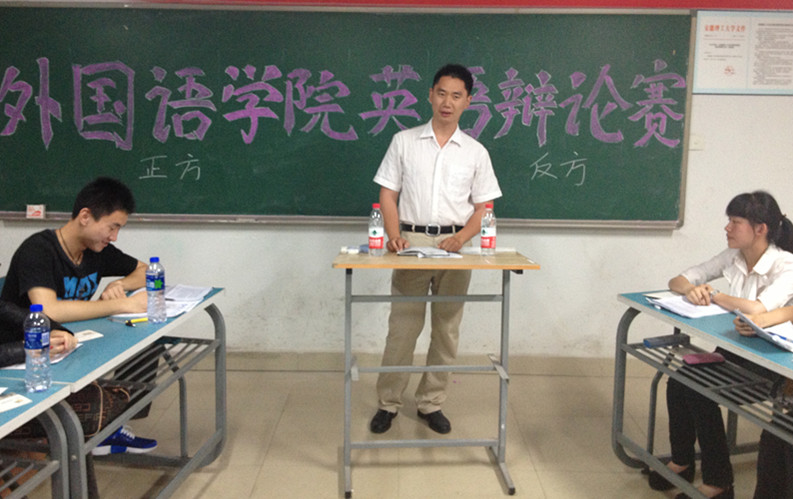 5月24日晚6点,外国语学院在西区医教104教室组织开展首届新生英语辩论赛,英语系张奇才老师、学院辩论社和英语俱乐部负责人等担任评委。