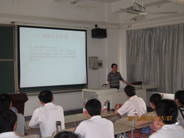 姚尚书以“知我淮南,爱我淮南”为主题,从淮南历史上的“第一”、淮南历史沿革、淮南历史中的文化现象和淮南的文化精神等四个方面,向我校广大师生详细介绍淮南市的历史与文化。
