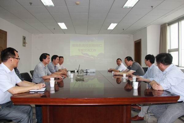 娄志勇首先对淮南高校后勤同仁的来访表示欢迎,并简要地介绍了我校集团的基本情况,尤其是集团近年来在安全长效管理、优质服务等方面的主要工作和取得的成效。随后,宾主双方主要就后勤管理、运行机制体制、节能减排等共同关心的具体问题进行了深入地交流和探讨。