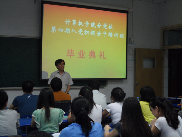 计算机科学与工程学院于6月4日晚在新教学楼107举行了第四期入党积极分子培训班毕业典礼。学院党委书记、分党校校长宋克俭、党委副书记、分党校副校长田显成出席毕业典礼。