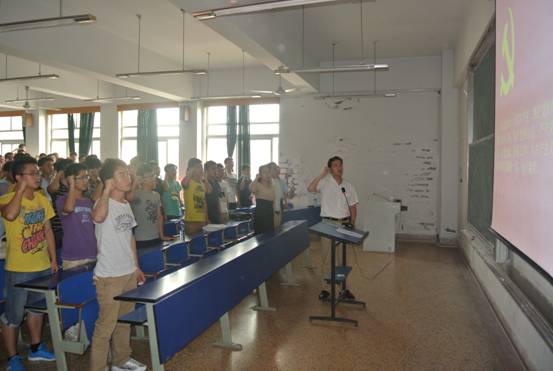 活动在雄壮的国歌声中开始,174名毕业生党员用铿锵有力的声音重温了入党誓词。