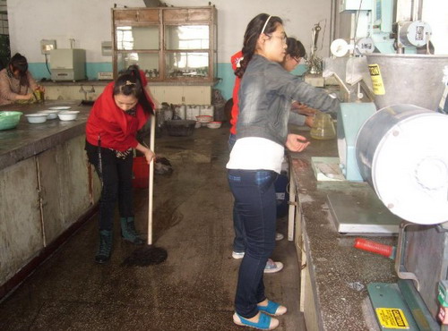 身在校本部的2010级公益劳动小分队可不会落后于他们的师弟师妹。他们的工作是维护学院选矿楼内实验室的卫生整洁。由于实验室内有很多大型实验设备,因而造成很多卫生死角,同学们竭尽全力克服困难,仔细清扫,用挥洒的汗水换来了实验室的窗明几净、整洁有序、焕然一新!