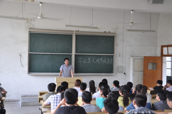活动分四个教室同时进行。胡光厚代表学院,将全体师生的祝福送给2013届毕业生,教育广大毕业生在离校前要将感恩化为文明离校的行动,用文明离校为大学画上圆满句号,希望广大毕业生走出校门后讲诚信、有道德,努力成为国家的栋梁。黄友锐要求全体毕业生在剩下的校园时光继续严格守纪,将当代大学生的文明之风传给学弟学妹,希望大家走出校门后不忘学习,做一个善于学习、勤于思考的人。董淑平提醒广大毕业生在办理离校手续办理中应该注意的事项,要求大家按时、准确办理离校手续,爱护公共财产,平安顺利离校。毕业班辅导员分别对离校前安全工作作了部署。