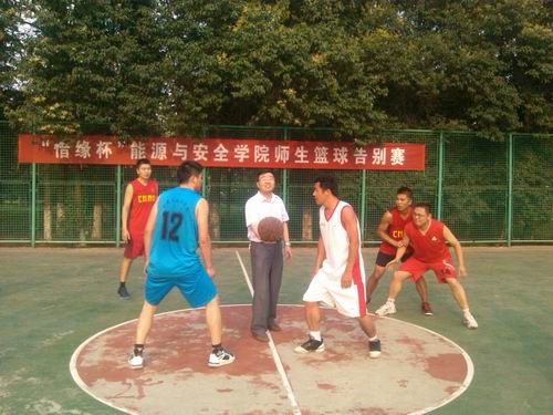 6月21日下午,能源与安全学院“惜缘杯”师生篮球告别赛在本部球场举行。学院2013届全体毕业生篮球精英与教职工篮球爱好者们以球会友,增进交流。学院党政领导莅临现场加油助阵。