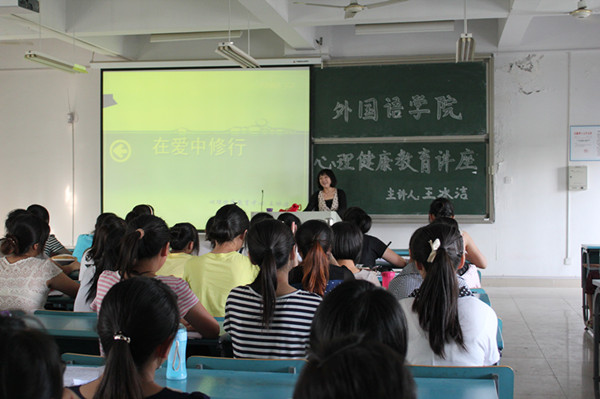 6月21日下午,外国语学院邀请学校心理健康咨询中心的王冰洁老师在医教301教室为2012级学生举办心理健康教育知识讲座。