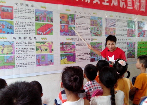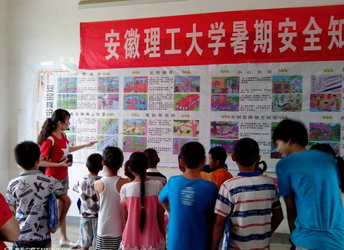 7月7日,化学工程学院、材料科学与工程学院、机械工程学院2013年暑期“三下乡”联合社会实践团队在化学工程学院关工委汪大立老师及3学院带队老师的带领下,赴安徽凤阳县小岗村小学开展安全知识宣讲。