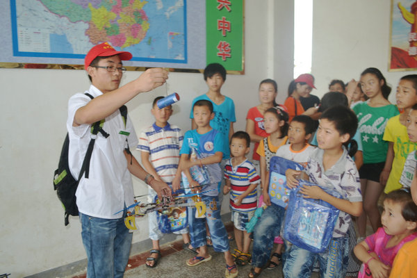 7月7日,机械工程学院科技支农服务团来到安徽凤阳县小岗村小岗学校,宣讲科普知识,并为这里的学生们带来了机器人表演。