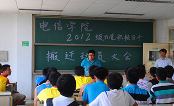 学院2011级学生宿舍搬迁工作是一项关系学校和学院安全稳定、关系学生切身利益的大事情,为做好学生搬迁工作,发挥入党积极分子的先锋模范作用,学院决定成立入党积极分子“搬迁突击队”协助搬迁工作,44名入党积极分子自愿报名参加。会上,徐敏宣布“搬迁突击队”正式成立,并宣读了“搬迁突击队”的成立原则、任务和纪律。学生宿舍搬迁工作是学期末学生工作的大事,作为入党积极分子参与这项工作,既是学院整体工作的需要,更是党组织对他们的培养和考验。徐敏希望各位入党积极分子要发扬不怕吃苦、敢于拼搏的精神,遵守纪律,听从搬迁工作老师的调动,积极配合相关工作,高效高质的完成此项工作;同时各位成员要各司其职,在搬迁工作中注意自身安全,保证搬迁工作的有序进行。