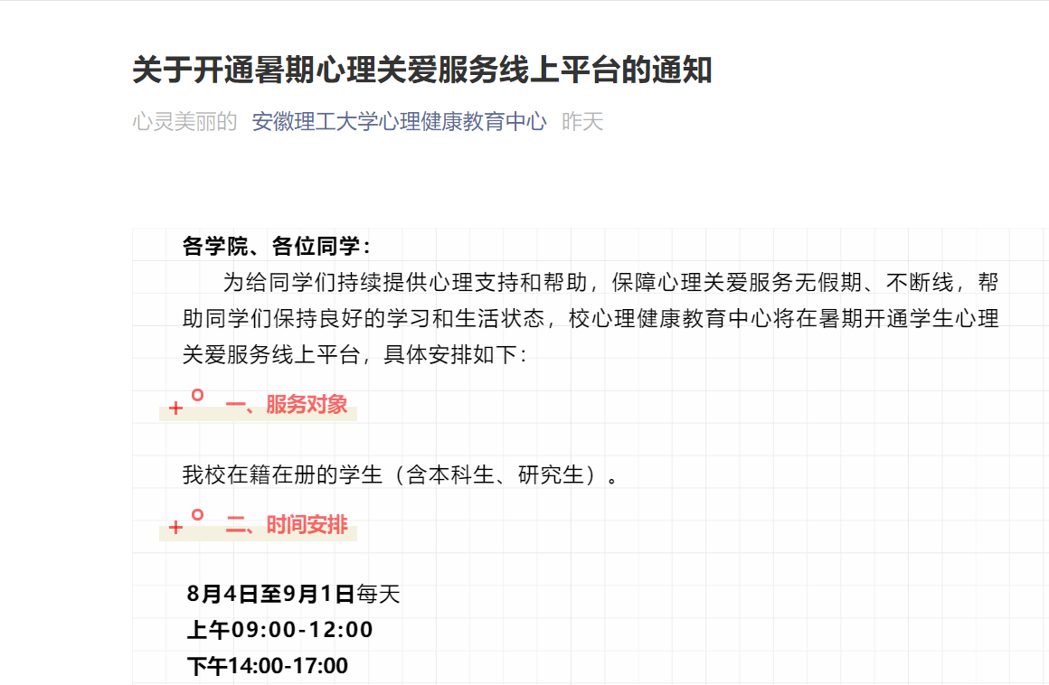学校暑期持续为师生提供心理咨询辅导