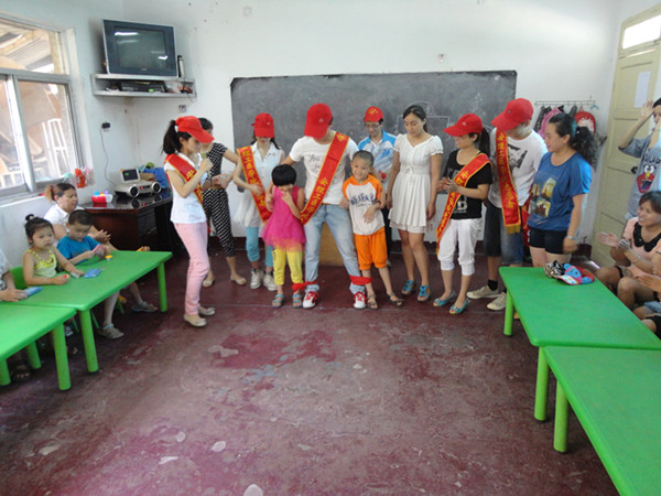 志愿者为孩子们精心准备了互的节目,有三人两脚、传球、老鹰抓小鸡、踩气球等小游戏,还有唱歌、跳舞等节目。在游戏的过程中为孩子们奖励了文具、球类及自制的可爱的小礼品等。游戏中的欢乐,让孩子们露出了开心的笑脸。在游戏与欢乐的笑声中,孩子们与志愿者们消除距离感,建立了真挚的感情,主动与志愿者亲密玩耍、欢笑。
