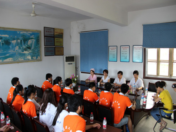 揭牌仪式后,田家庵区卫生局刘局长、卫生院郑院长和部分医务人员与大学生进行了座谈。通过交流,同学们了解了基层医疗卫生状况,了解了将来所从事的岗位能力和素质要求,促进同学们转变就业观念,树立面向基层就业创业的思想意识。
