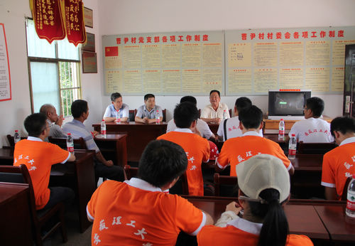 7月14日上午9时,土木建筑学院暑期“三下乡”社会实践服务团安全抵达实践基地之一的淮南市高皇镇曹尹村,受到曹尹村村委会和当地企业家代表的的热情接见。