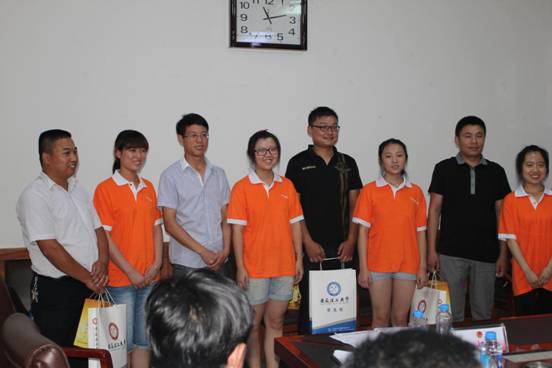 交流结束后,实践团还向到场的大学生村官代表赠送纪念品,双方合影留念,互留联系方式,祝福友谊长存。