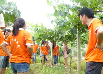 葡萄园负责人对实践团队的此次下乡学习活动表示大力支持,并向志愿者们细心地讲解、指导、示范、操作。据介绍,万佛湖镇的葡萄种植面积约100亩,志愿者们认真地参观葡萄园的种植环境、葡萄生长状况,同时向园主了解了一些有关葡萄种植、发展前景、市场供求以及经济效益等方面的调研问题。