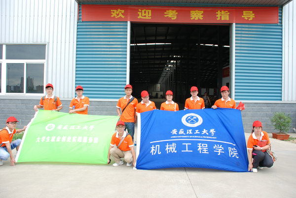 7月15日上午,安徽理工大学机械工程学院暑期大学生就业创业社会实践团队一行举行了“安徽理工大学大学生就业创业见习基地”揭牌仪式并参观了安徽瑞田机械有限公司。机械工程学院党委书记张安宁、党委副书记徐育军、相关专业课教师、大学生就业创业社会实践团队志愿者,舒城县有关领导以及安徽瑞田机械有限公司相关负责人参加了此次揭牌仪式。