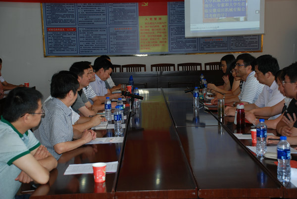 揭牌仪式结束后,社会实践团队与瑞田机械有限公司召开座谈会,双方展开了深入互动和交流。公司党委书记郭世明就企业自身发展做简要汇报,学院张安宁书记介绍了学院发展历史、学科设置、人才培养模式等相关情况,与会双方在校企合作等问题达成共识并对今后进一步开展合作发展表达了期望。