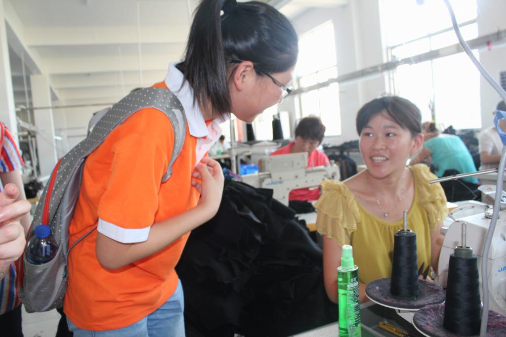 7月12日上午,淮南富华服饰有限公司车间,一群年轻的大学生们围着企业外贸负责人黄经理,兴致勃勃的听她介绍外贸出口的基本流程。黄经理以服装出口为例,告诉英语专业的同学们外贸出口基本操作程序主要包括六步:客户开发与业务洽谈、合同签署、备货与商检、报关与货运、收汇、核销等。她结合工作经验,强调了每一步需注意的具体事项,如合同签署地和仲裁机构的选择、集装箱的装运等。这些实用的知识让刚刚接触外贸课程的英语专业大学生开拓了眼界。