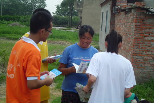 为了普及农村常见疾病的预防知识,团队成员们冒着酷暑以散发宣传册和现场讲解的方式为当地村民普及医疗知识,并和安徽医科大学第一附属医院的志愿者一起为村民义务诊治。真正将暑期社会实践与百姓的生活所需结合起来。