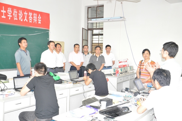 9月6日下午,安徽理工大学教务处处长宫能平、实验室与仪器设备管理处处长苏嘉银、学生处处长田中良、团委书记王先江在学院院长黄友锐、教学副院长祝龙记、科研副院长周孟然、电子竞赛巡视员朱秀英老师的陪同下看望了安徽理工大学参加2013年全国大学生电子设计竞赛的队员们。各位领导查看了竞赛学生的作品完成情况,并和参赛学生就产品的设计方案、材料的选取、论文的书写情况进行了交流。宫能平对电气与信息工程学院多年来在学生竞赛方面取得的成绩给予了充分肯定,他希望广大学子克服困难,发挥顽强的斗志,认真完成竞赛的产品和论文工作。最后,他代表学校职能部门祝愿广大学子在本次全国大赛中取得竞赛佳绩。