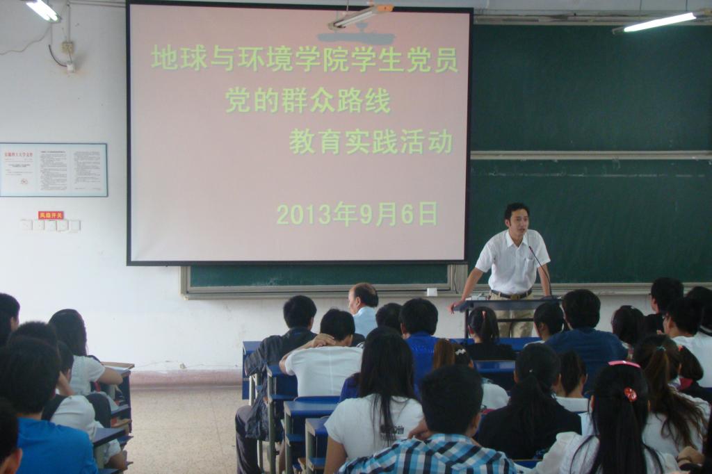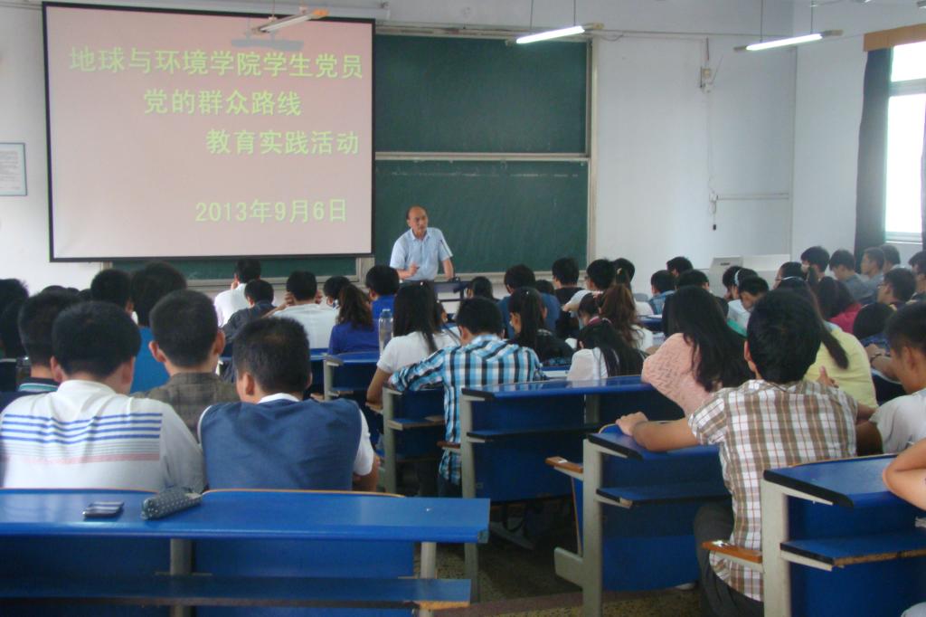 9月6日下午,地球与环境学院在校本部新附2203教室召开学生党员党的群众路线教育实践活动动员大会,学院党委书记盛鹏飞、副书记侯辉、各年级辅导员以及学院学生党员参加了本次大会。