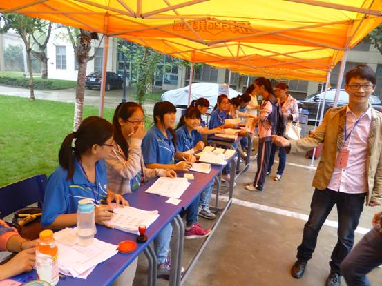 工作现场,同学们细心的解答、及时的帮助、热情的服务、有条不紊的工作程序、优良的精神面貌都得到了家长的一致好评。