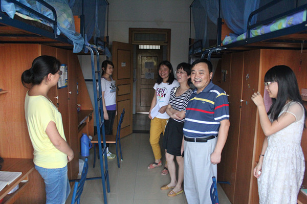 石秀光一行走访了学院38个学生宿舍,与新生们亲切交谈,向新生们介绍学校基本情况,细心询问学生进校后的各种感受和生活情况,引导新生逐步养成自理自立能力,希望新生们以积极的心态和良好的面貌尽快适应大学校园生活,并重点强调了宿舍用电安全、外出交通安全、人身财产安全等,班主任们还就新生们关心的专业学习和课程设置等问题进行了详细介绍。那些没回家的新生家长在和老师们谈完话后都表示:“把孩子交给这样的学校,我们放心、安心了”。