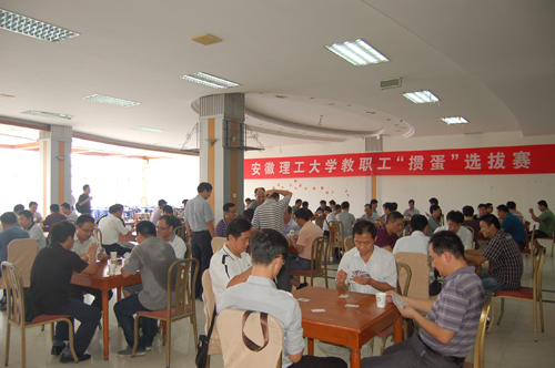 “掼蛋”比赛是目前较为流行的扑克娱乐活动,为丰富教职工业余文化生活,选拔我校参加淮南市第七届运动会“掼蛋”比赛队员。9月21、22日下午,由校工会组织的2013年教职工“掼蛋”选拔赛在校本部大学生食堂四楼大厅举行,来自基层15个分工会的68名选手参加了比赛。