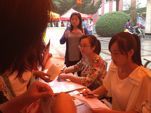9月11-13日新生报到期间,廖华云等4位2013级新生班主任前往北校区迎新现场,第一时间与同学们见面,并与新生的家长进行沟通,深入了解同学们的家庭情况与成长环境,为今后有效开展工作打下扎实的基础。