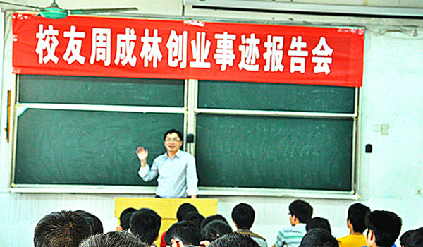 10月13日下午,由电气与信息工程学院主办的“校友周成林创业事迹报告会”在合301教室成功举行。报告会由学院党委副书记董淑平主持,大三年级共140人参加了报告会。