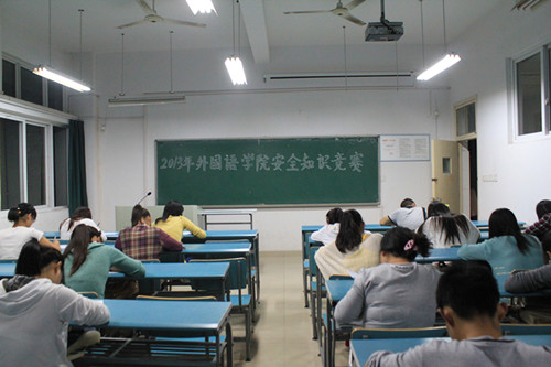 10月13日晚7:00,外国语学院分别在医教103、104、105、106教室举行安全知识竞赛,学院120名新生全部参加竞赛。
