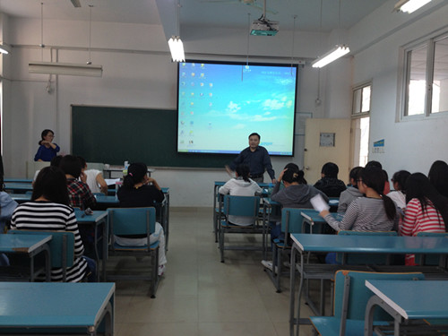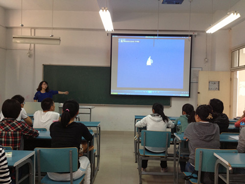 日本独特的地理条件和悠久的历史孕育了别具一格的日本文化。樱花、和服、俳句与武士、清酒、神道教构成了传统日本的两个方面——菊与刀。日语系的班主任李梅老师在日本留学三年攻读硕士学位,对日本经济、社会、历史、文化有着较为深刻的了解。李梅通过生动的PPT展示与声情并茂的讲解向同学们介绍了日本的发展历史和传统文化,认识中日传统文化的深厚联系。她还向新生们介绍了日本音乐、绘画、文学、动漫等各方面的相关知识。