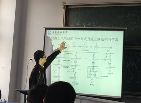10月22日下午,电气与信息工程学院研究生王常骐同学在新教学楼1604教室作了一场题为“大型海上风电场分布式直流输电接入电网关键技术研究”为主题的学术报告会。