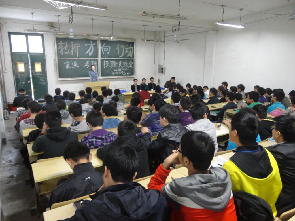 10月25日下午,在2011级同学们的热切期盼下,化学工程学院以“转折、方向、行动”为主题的就业、考研经验交流会在合附楼101教室举行。会上,朱慧芝、潘城、朱恺波、戴春阳、康磊等五位已毕业的同学,根据自己的考研或就业经历向学弟、学妹们分享经验,畅谈体会,整个交流会现场气氛十分活跃。