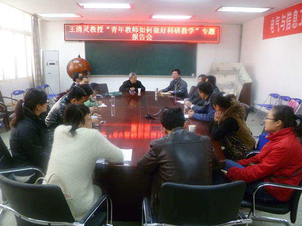 11月15日下午,电气与信息工程学院在学院3楼会议室举办优秀教师报告会,邀请学院王清灵教授作“青年教师如何做好教学与科研”主题报告会,报告会由学院院长黄友锐主持。