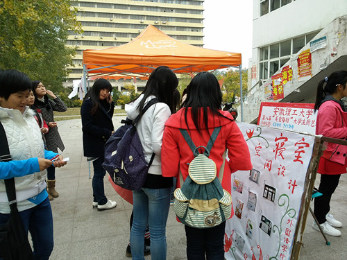 本届寝室文化节以“创建温馨家园、加强学风建设”为指导,有寝室装饰大赛、寝室“空间”设计比赛、室徽大pk、“我聊寝室情”交流等活动组成。学生们用气球、彩纸、装饰彩带等简单的材料,发挥自己的创造力,齐心协力让寝室焕然一新。一个寝室一个设计理念,一个空间一个装饰主题,墙上的一张海报、阳台上悬挂的手制风铃、门口的室徽设计,无不展现着学生们独有的文化气质和智慧。