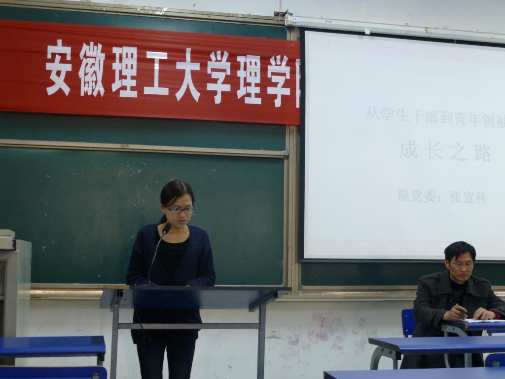 接着,学院团委副书记冷金兰为学生作了《加强自身建设,争取早日加入党组织》的报告。她从入党的条件和要求介绍了学生入党的基本程序,并详细分析了党员享有的权利和履行的义务。要求学生干部刻苦努力,在努力成为一名优秀大学生的同时,将成为一名合格的共产党员作为重要的人生目标。要充分发挥党员先锋模范作用,必须进一步坚定对马克思主义信仰、坚定对社会主义的信念;加强党性修养,锤炼优秀品格,时刻严格要求自己,切实履行好党员的义务,始终保持党员的先进性;在工作、学习和生活中注重发挥模范带头作用,成为周围学生学习的好榜样。