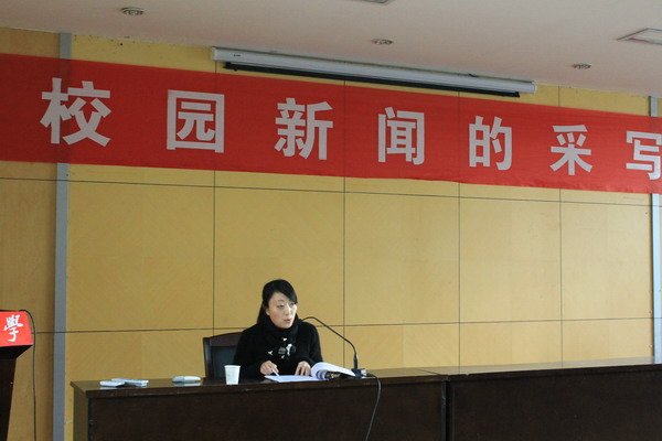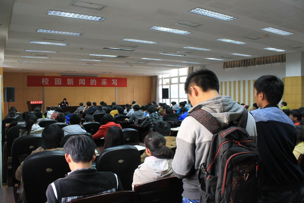 11月19日下午3:40,由校党委宣传部和科技产业处联合主办的《百家讲坛》在校本部新图书馆一楼西侧会议室举行。《淮南日报》政文部主任张静应邀作了一场题为《校园新闻的采写》的新闻知识讲座。我校教职工通讯员、学生记者、广播站编播员、各学院通讯社成员以及广大新闻爱好者近200人参听了讲座。