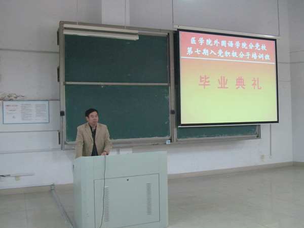 11月22日下午,医学院外国语学院分党校在医教403教室召开了第七期入党积极分子培训班毕业典礼。医学院党委书记、分党校校长张荣波参加典礼并讲话。典礼由班主任何云鹏主持。