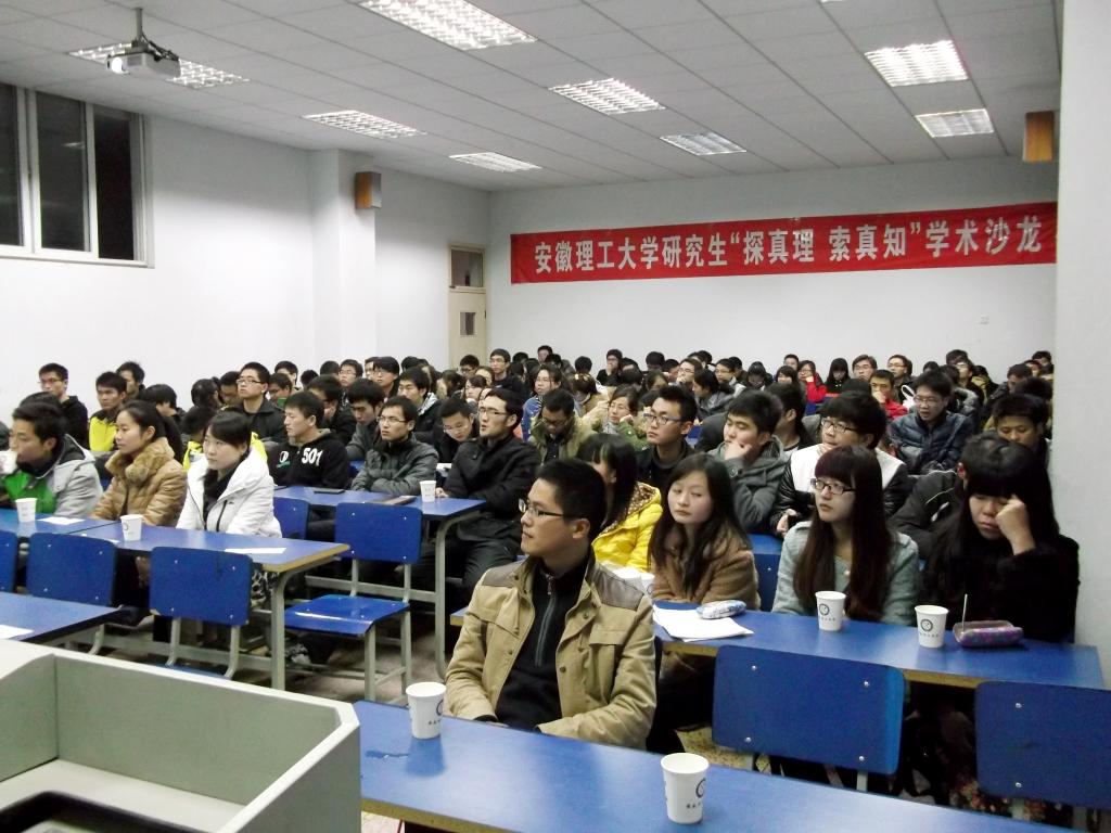 伴随着浓浓冬意,11月25日晚,由校团委、校研究生会联合举办的安徽理工大学“探真理 索真知”研究生学术沙龙第一期在校本部教学楼1404教室开讲,来自全校不同专业的120余名研究生参加了本次活动。