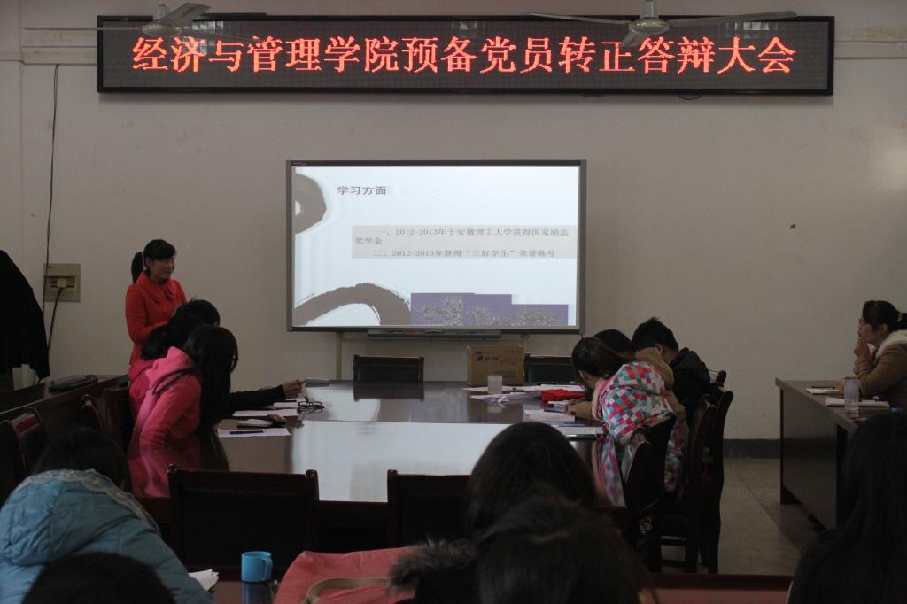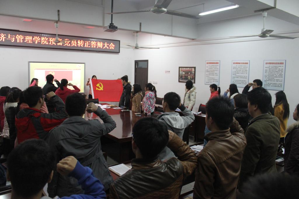 11月29日下午,经济与管理学院党委在学院会议室召开了预备党员转正答辩会议。学院党委副书记王勇出席,学院辅导员和50多名学生党员共同参加了此次答辩大会。