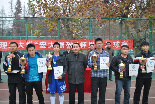 为期两周的安徽理工大学2013年“宏大爆破杯”大学生男子足球联赛,在校领导的关心指导下,在兄弟单位及校友会的大力支持下,在紧张、有序、拼搏、和谐的气氛中,于12月3日下午圆满地完成了所有赛事。