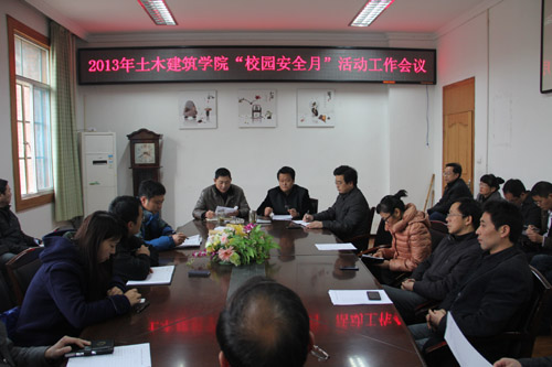 吴秉江传达了学校校园安全月活动有关会议和文件精神,对学院《2013年“校园安全月”活动实施方案》做了说明,并作出了具体部署和安排。