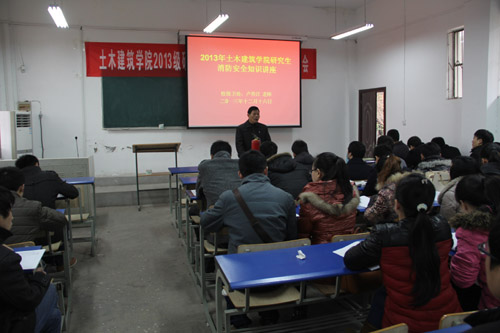 为进一步加强研究生的安全教育工作,增强研究生安全意识,12月16日下午,土木建筑学院邀请校保卫处消防科卢传江老师在制图楼1楼多媒体教室,为学院全体研究生开展安全消防知识专题讲座。学院副院长吴秉江主持讲座。